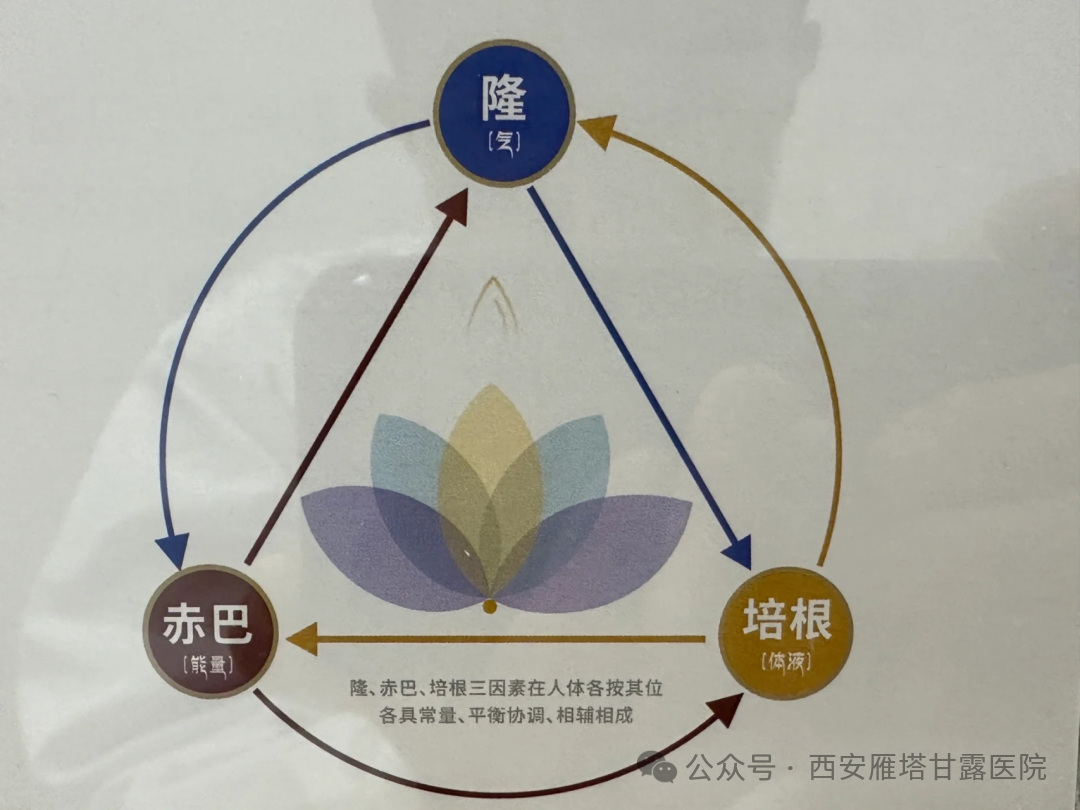 1、三因失衡:人体内“隆”(主司呼吸、循环、运动)、“赤巴”(主司消化、代谢)、“培根”(主司津液、润泽)三因动态平衡被打破,其中“隆”邪亢进,扰动白脉系统。