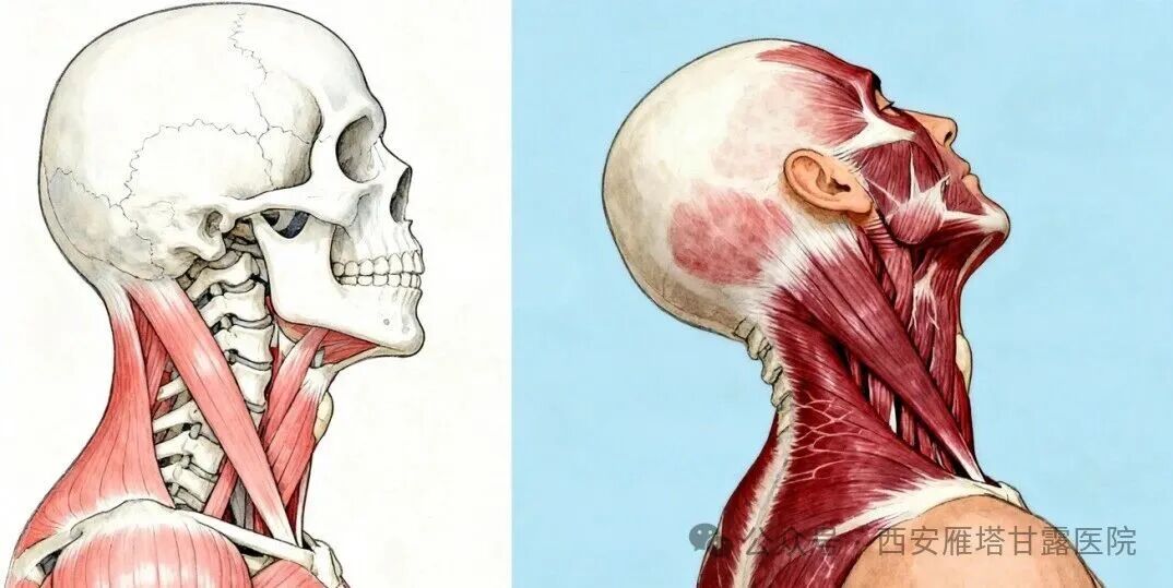 病变可累及颈部多组肌群,但大多只累及胸锁乳突肌导致附着点挛缩和纤维变性。