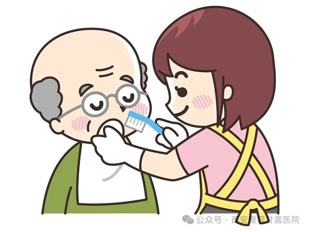 吃完后用软毛牙刷刷牙,或用纱布擦牙齿、舌头,减少细菌滋生,降低肺炎风险。