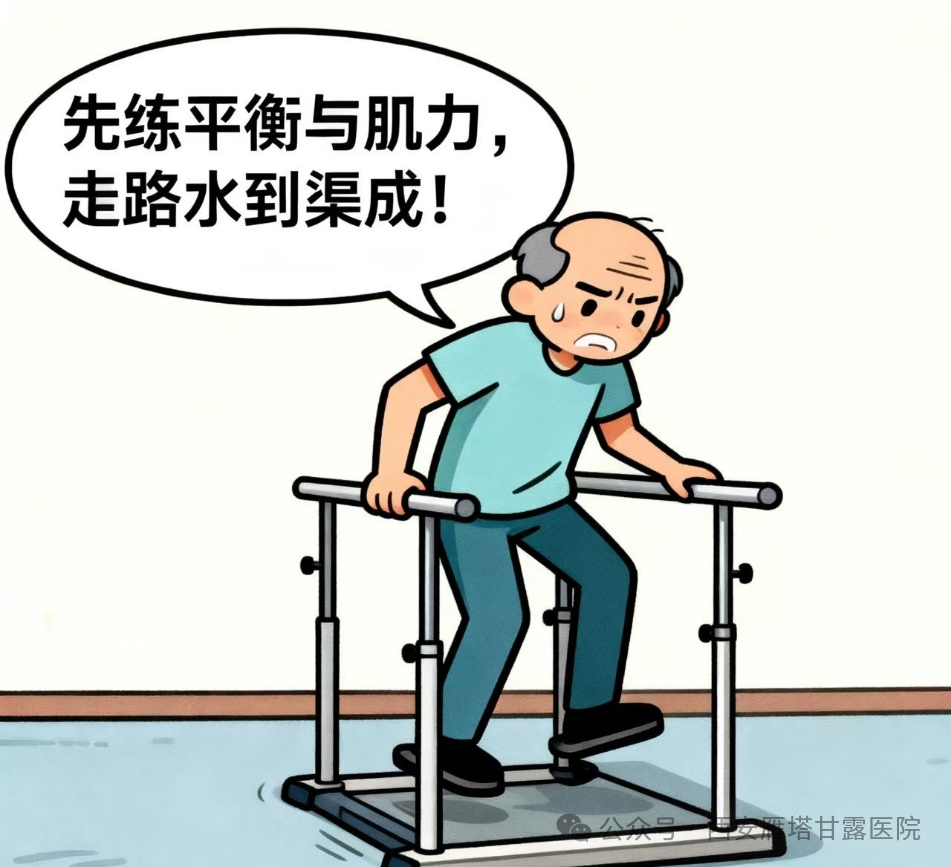 误区描述:“躺着想走路,坐起来就想跑!家人架着、自己扶着墙,颤颤巍巍也要走!”