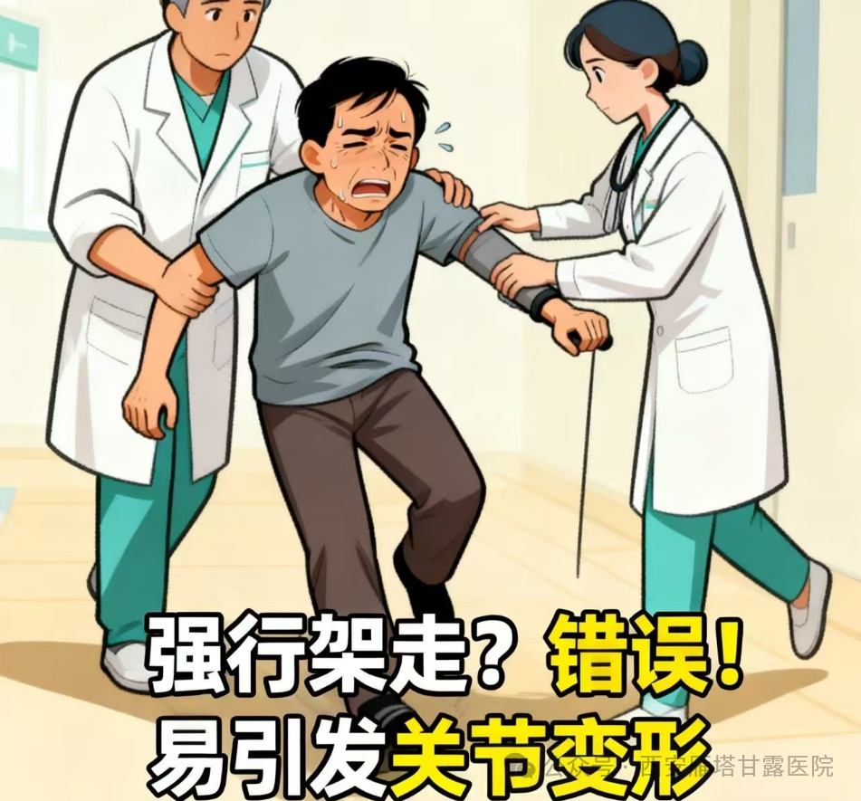 误区描述:家属心急如焚:“胳膊伸不开?我帮你硬掰!”