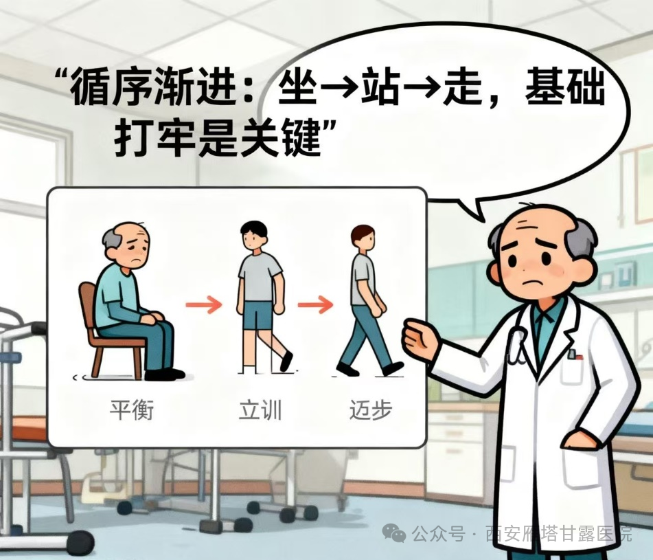 真相大白:走路是康复的“高级毕业项目”,不是“入门必修课”! 在坐不稳、站不直、力量不够、姿势控制不了的情况下强行走路,相当于让一座地基不稳、柱子歪斜的房子硬要封顶开业。